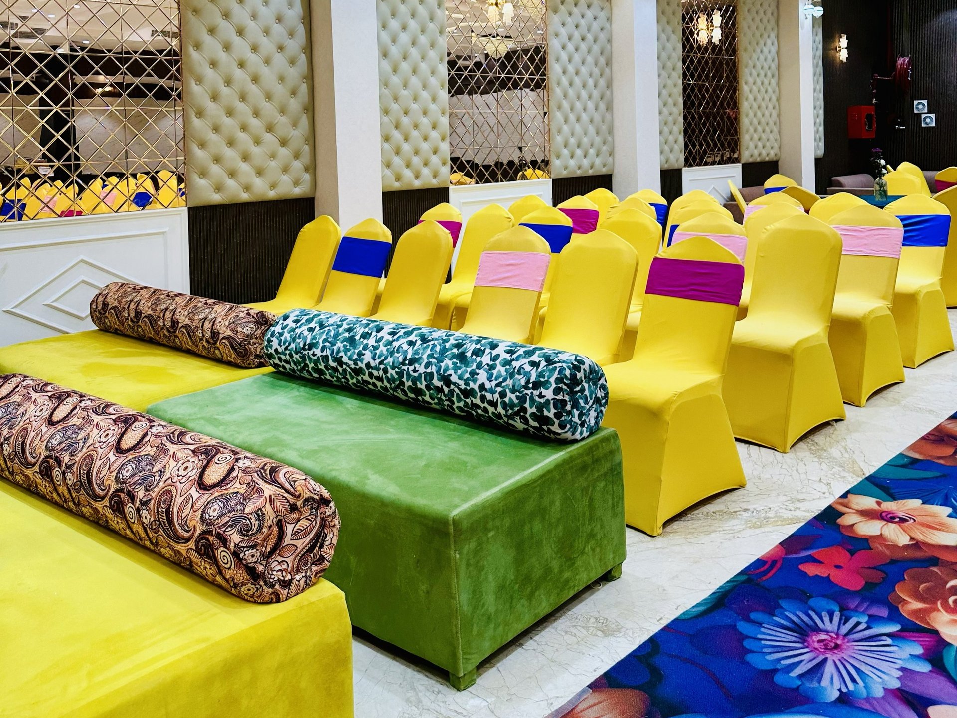 Suitable for corporate meetings, workshops, kitty parties, small social gatherings, and intimate wedding mandaps.
