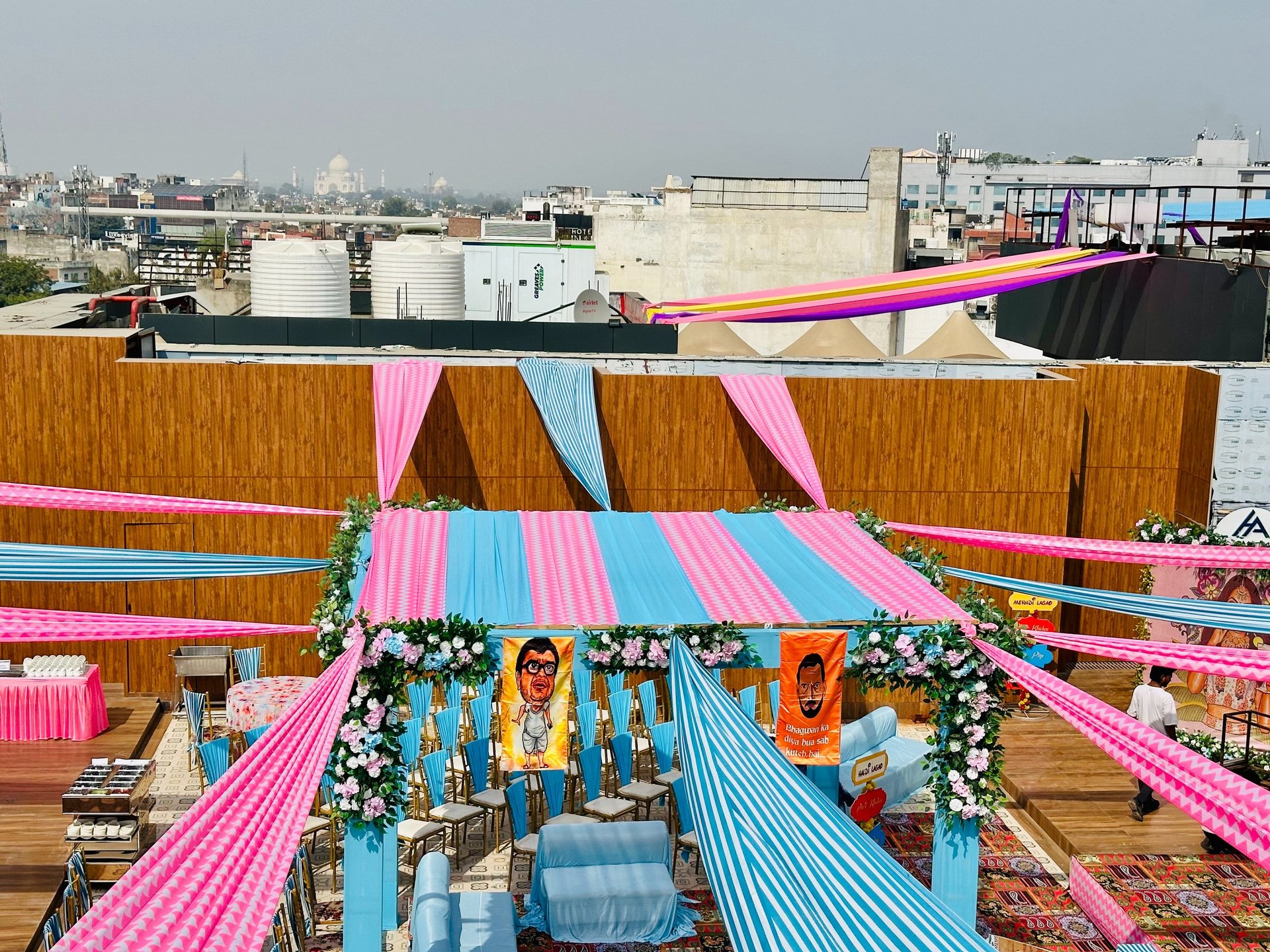 4,800 sq. ft. open-air rooftop with Taj Mahal views.